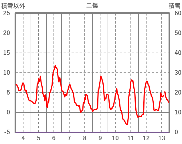 | 日 | 時 | 気温 | 降水 | 風向/風速 | 日照 | 積雪 | 降雪 |
