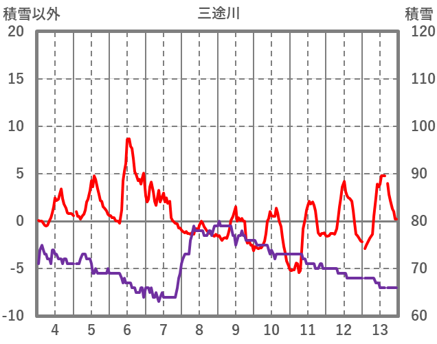 | 日 | 時 | 気温 | 降水 | 風向/風速 | 日照 | 積雪 | 降雪 |