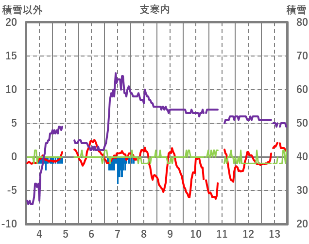 | 日 | 時 | 気温 | 降水 | 風向/風速 | 日照 | 積雪 | 降雪 |