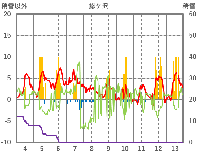 | 日 | 時 | 気温 | 降水 | 風向/風速 | 日照 | 積雪 | 降雪 |