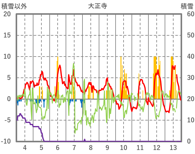 | 日 | 時 | 気温 | 降水 | 風向/風速 | 日照 | 積雪 | 降雪 |