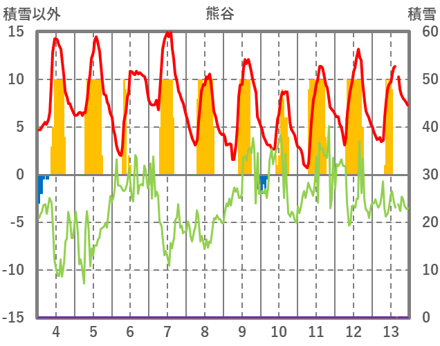 | 日 | 時 | 気温 | 降水 | 風向/風速 | 日照 | 積雪 | 降雪 |
