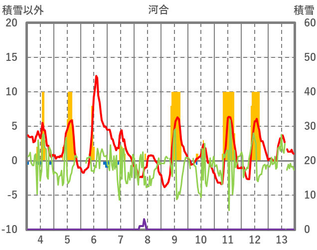 | 日 | 時 | 気温 | 降水 | 風向/風速 | 日照 | 積雪 | 降雪 |