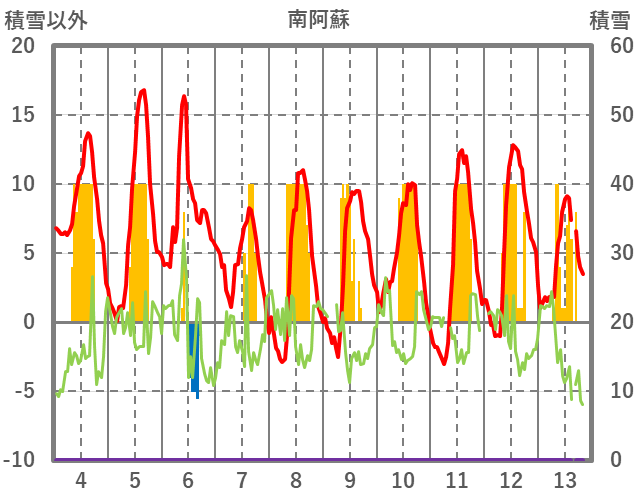 | 日 | 時 | 気温 | 降水 | 風向/風速 | 日照 | 積雪 | 降雪 |
