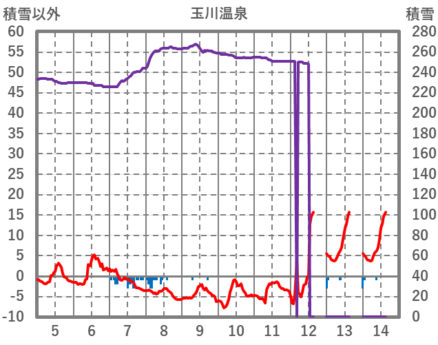 | 日 | 時 | 気温 | 降水 | 風向/風速 | 日照 | 積雪 | 降雪 |