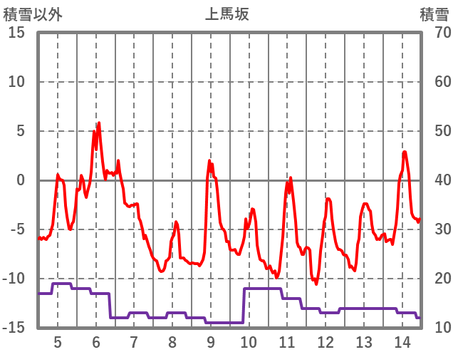 | 日 | 時 | 気温 | 降水 | 風向/風速 | 日照 | 積雪 | 降雪 |