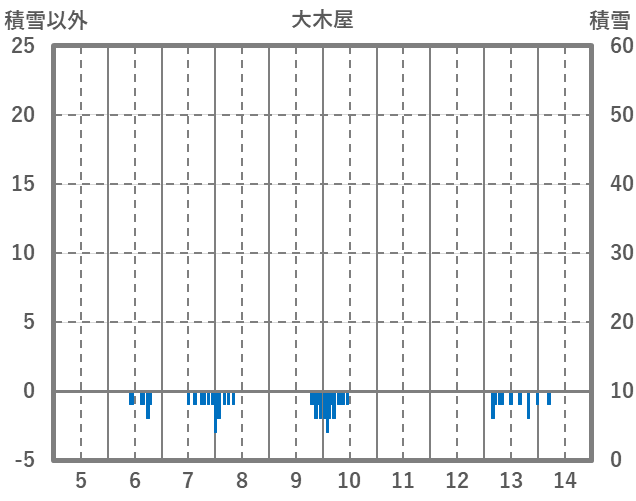 | 日 | 時 | 気温 | 降水 | 風向/風速 | 日照 | 積雪 | 降雪 |