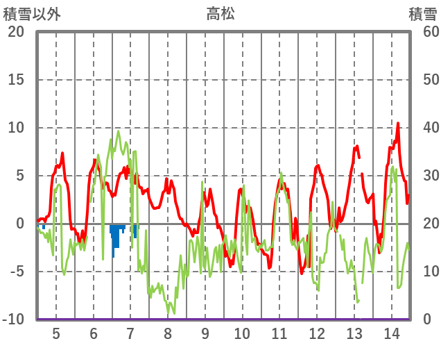 | 日 | 時 | 気温 | 降水 | 風向/風速 | 日照 | 積雪 | 降雪 |