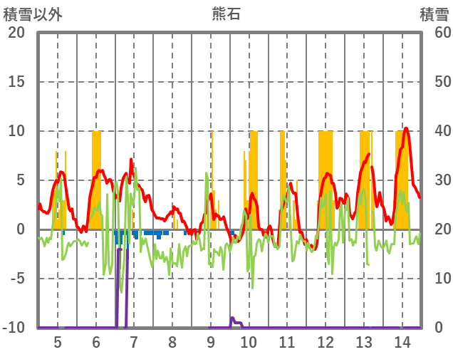 | 日 | 時 | 気温 | 降水 | 風向/風速 | 日照 | 積雪 | 降雪 |