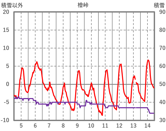 | 日 | 時 | 気温 | 降水 | 風向/風速 | 日照 | 積雪 | 降雪 |