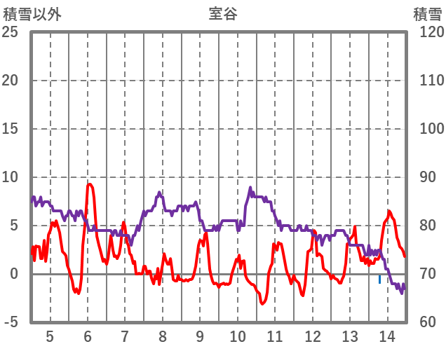 | 日 | 時 | 気温 | 降水 | 風向/風速 | 日照 | 積雪 | 降雪 |