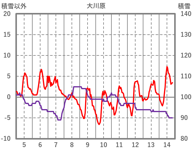 | 日 | 時 | 気温 | 降水 | 風向/風速 | 日照 | 積雪 | 降雪 |