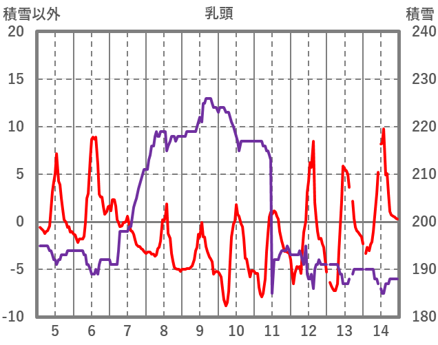 | 日 | 時 | 気温 | 降水 | 風向/風速 | 日照 | 積雪 | 降雪 |
