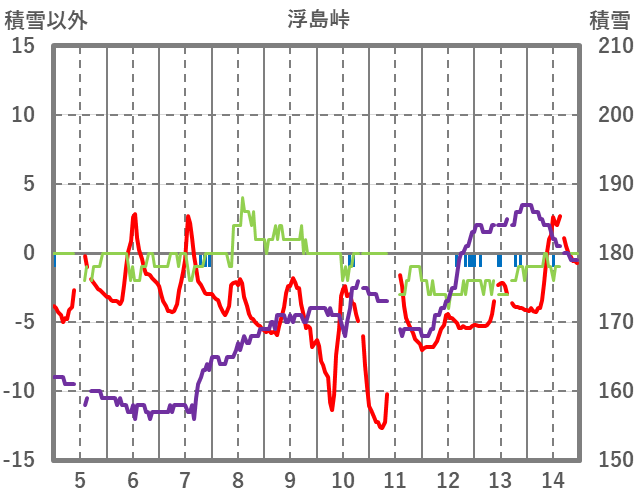 | 日 | 時 | 気温 | 降水 | 風向/風速 | 日照 | 積雪 | 降雪 |