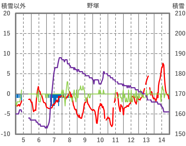 | 日 | 時 | 気温 | 降水 | 風向/風速 | 日照 | 積雪 | 降雪 |