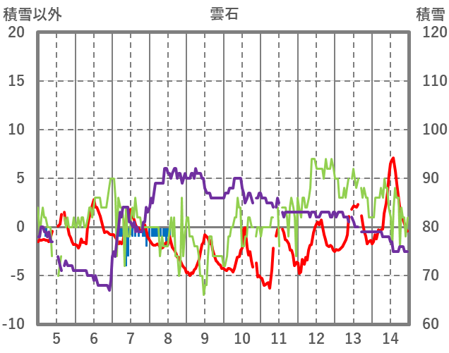 | 日 | 時 | 気温 | 降水 | 風向/風速 | 日照 | 積雪 | 降雪 |