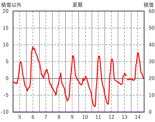 | 日 | 時 | 気温 | 降水 | 風向/風速 | 日照 | 積雪 | 降雪 |
