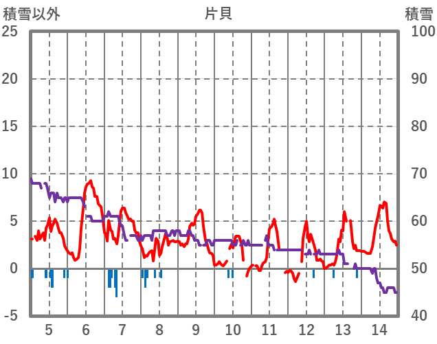 | 日 | 時 | 気温 | 降水 | 風向/風速 | 日照 | 積雪 | 降雪 |