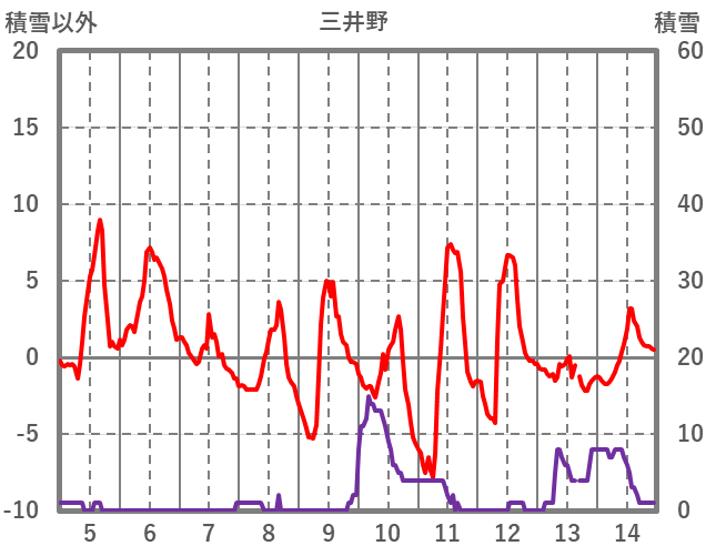 | 日 | 時 | 気温 | 降水 | 風向/風速 | 日照 | 積雪 | 降雪 |