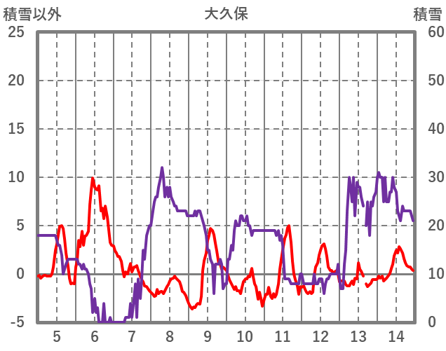 | 日 | 時 | 気温 | 降水 | 風向/風速 | 日照 | 積雪 | 降雪 |