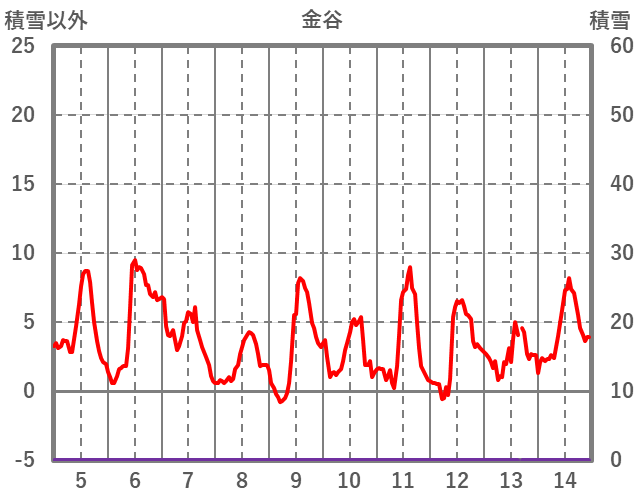 | 日 | 時 | 気温 | 降水 | 風向/風速 | 日照 | 積雪 | 降雪 |