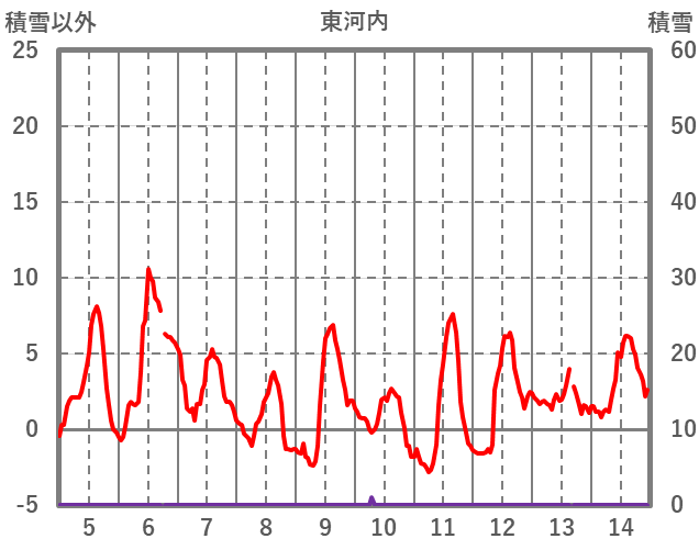 | 日 | 時 | 気温 | 降水 | 風向/風速 | 日照 | 積雪 | 降雪 |