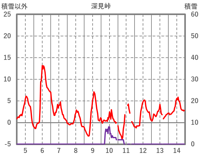 | 日 | 時 | 気温 | 降水 | 風向/風速 | 日照 | 積雪 | 降雪 |