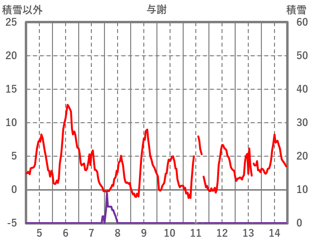| 日 | 時 | 気温 | 降水 | 風向/風速 | 日照 | 積雪 | 降雪 |