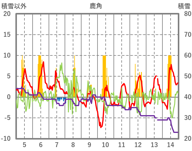 | 日 | 時 | 気温 | 降水 | 風向/風速 | 日照 | 積雪 | 降雪 |