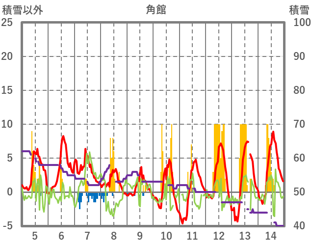 | 日 | 時 | 気温 | 降水 | 風向/風速 | 日照 | 積雪 | 降雪 |