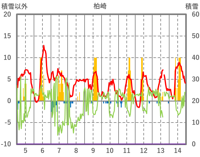 | 日 | 時 | 気温 | 降水 | 風向/風速 | 日照 | 積雪 | 降雪 |