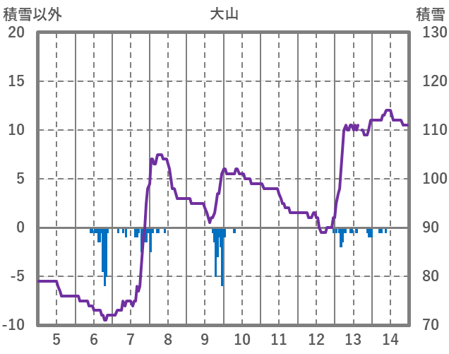| 日 | 時 | 気温 | 降水 | 風向/風速 | 日照 | 積雪 | 降雪 |