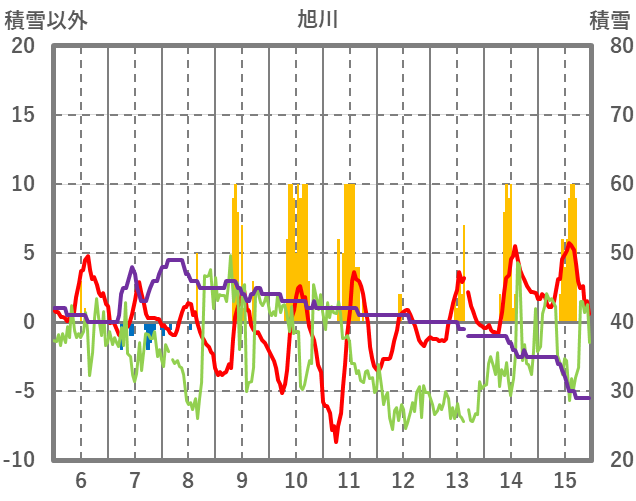 | 日 | 時 | 気温 | 降水 | 風向/風速 | 日照 | 積雪 | 降雪 |