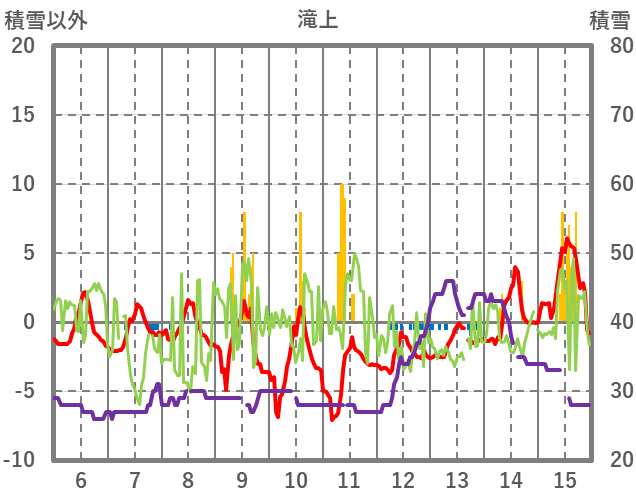 | 日 | 時 | 気温 | 降水 | 風向/風速 | 日照 | 積雪 | 降雪 |