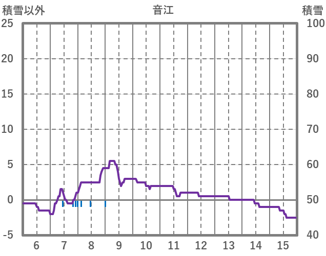 | 日 | 時 | 気温 | 降水 | 風向/風速 | 日照 | 積雪 | 降雪 |