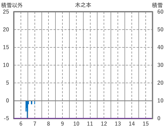 | 日 | 時 | 気温 | 降水 | 風向/風速 | 日照 | 積雪 | 降雪 |
