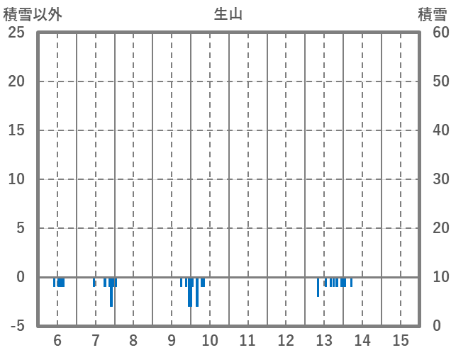 | 日 | 時 | 気温 | 降水 | 風向/風速 | 日照 | 積雪 | 降雪 |