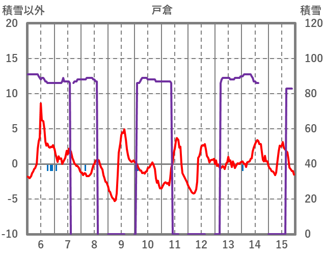 | 日 | 時 | 気温 | 降水 | 風向/風速 | 日照 | 積雪 | 降雪 |