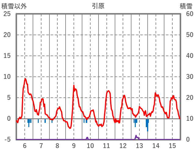 | 日 | 時 | 気温 | 降水 | 風向/風速 | 日照 | 積雪 | 降雪 |