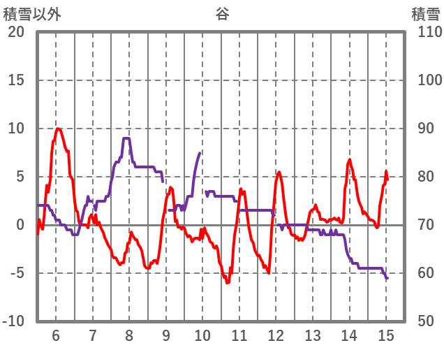 | 日 | 時 | 気温 | 降水 | 風向/風速 | 日照 | 積雪 | 降雪 |