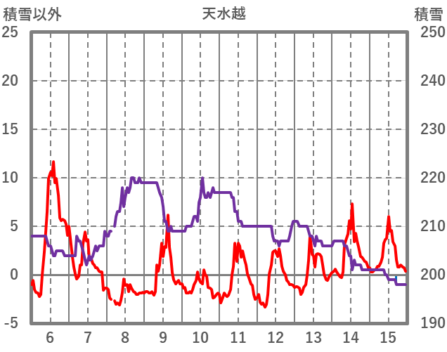 | 日 | 時 | 気温 | 降水 | 風向/風速 | 日照 | 積雪 | 降雪 |