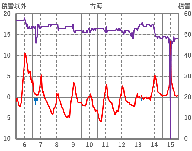 | 日 | 時 | 気温 | 降水 | 風向/風速 | 日照 | 積雪 | 降雪 |