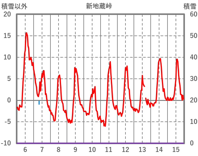 | 日 | 時 | 気温 | 降水 | 風向/風速 | 日照 | 積雪 | 降雪 |