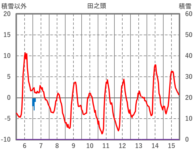 | 日 | 時 | 気温 | 降水 | 風向/風速 | 日照 | 積雪 | 降雪 |