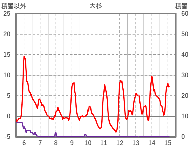 | 日 | 時 | 気温 | 降水 | 風向/風速 | 日照 | 積雪 | 降雪 |