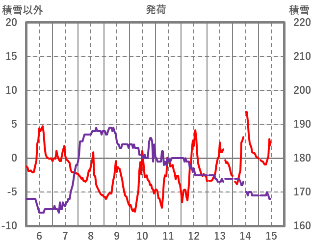 | 日 | 時 | 気温 | 降水 | 風向/風速 | 日照 | 積雪 | 降雪 |