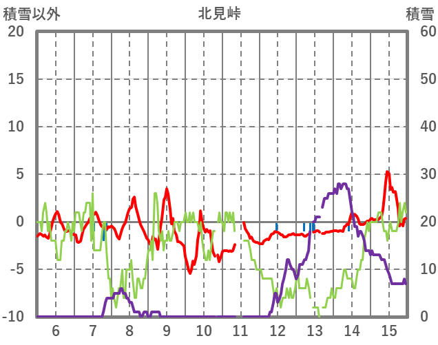 | 日 | 時 | 気温 | 降水 | 風向/風速 | 日照 | 積雪 | 降雪 |