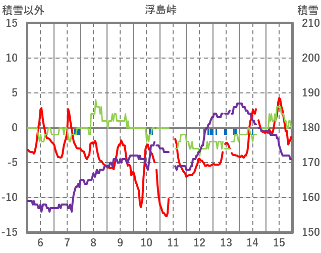 | 日 | 時 | 気温 | 降水 | 風向/風速 | 日照 | 積雪 | 降雪 |