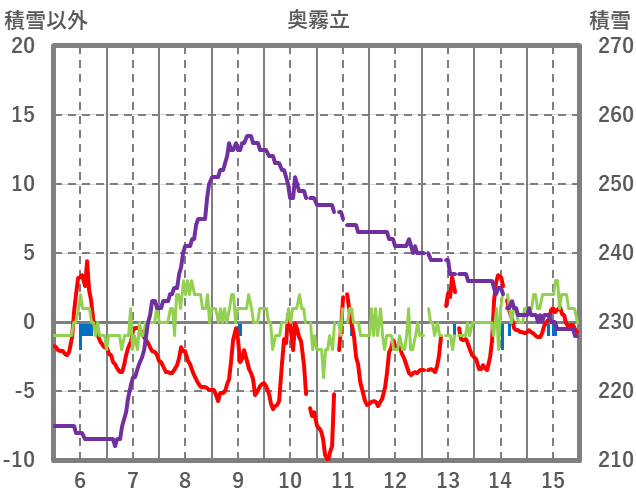 | 日 | 時 | 気温 | 降水 | 風向/風速 | 日照 | 積雪 | 降雪 |