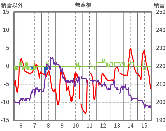 | 日 | 時 | 気温 | 降水 | 風向/風速 | 日照 | 積雪 | 降雪 |